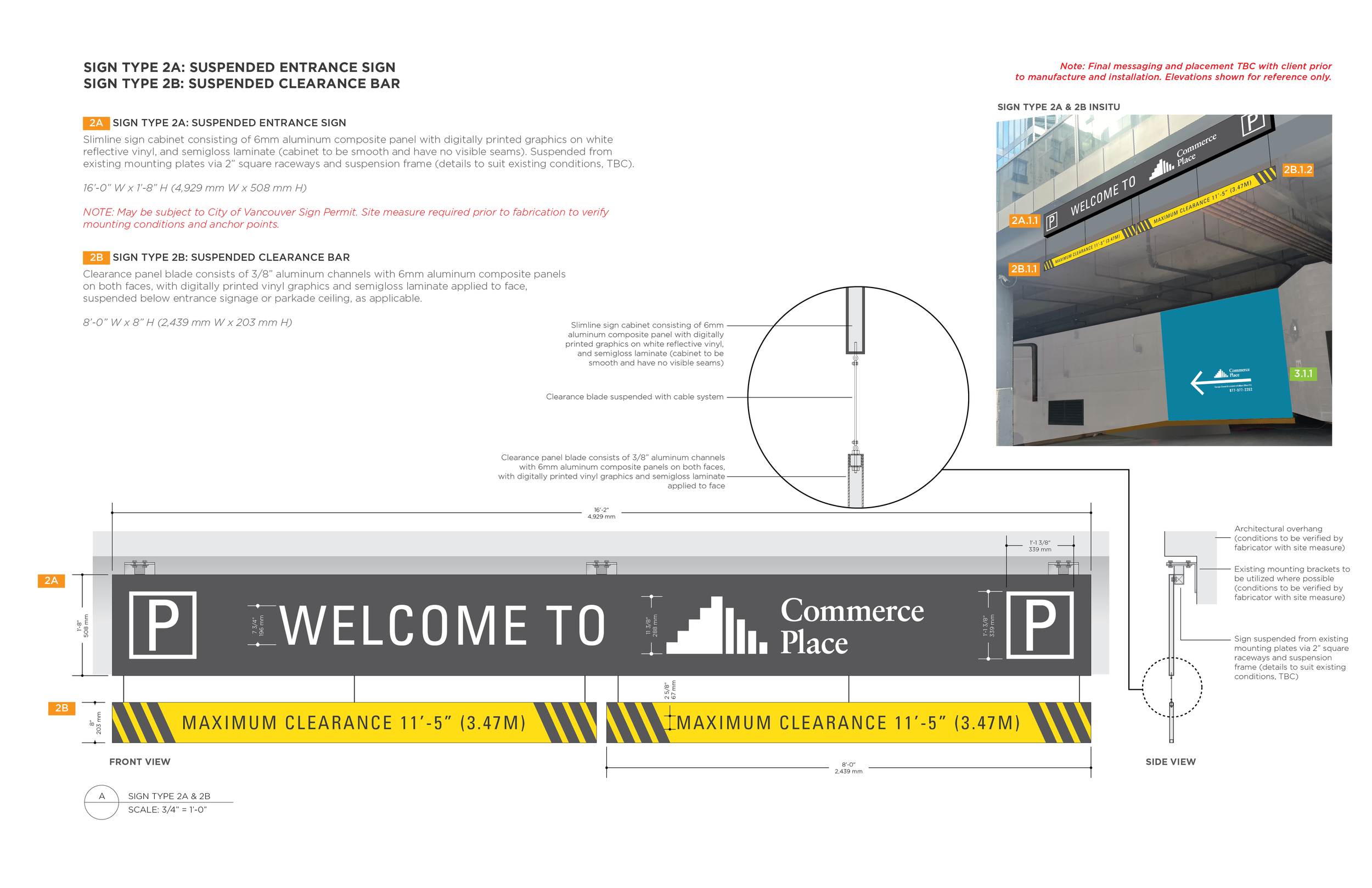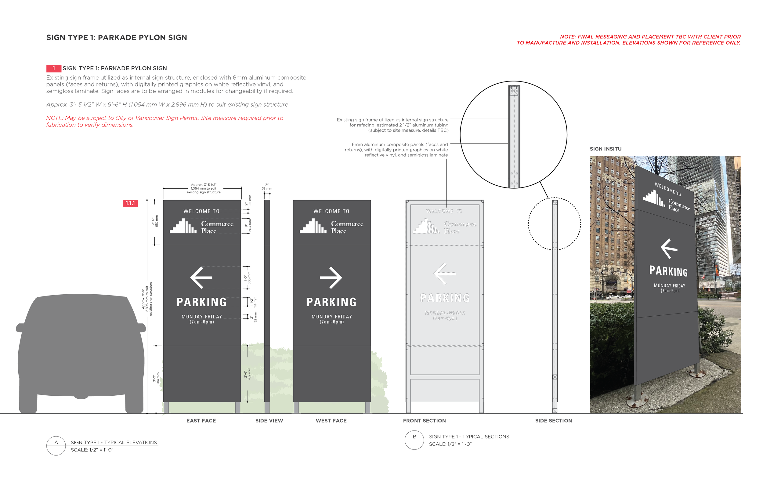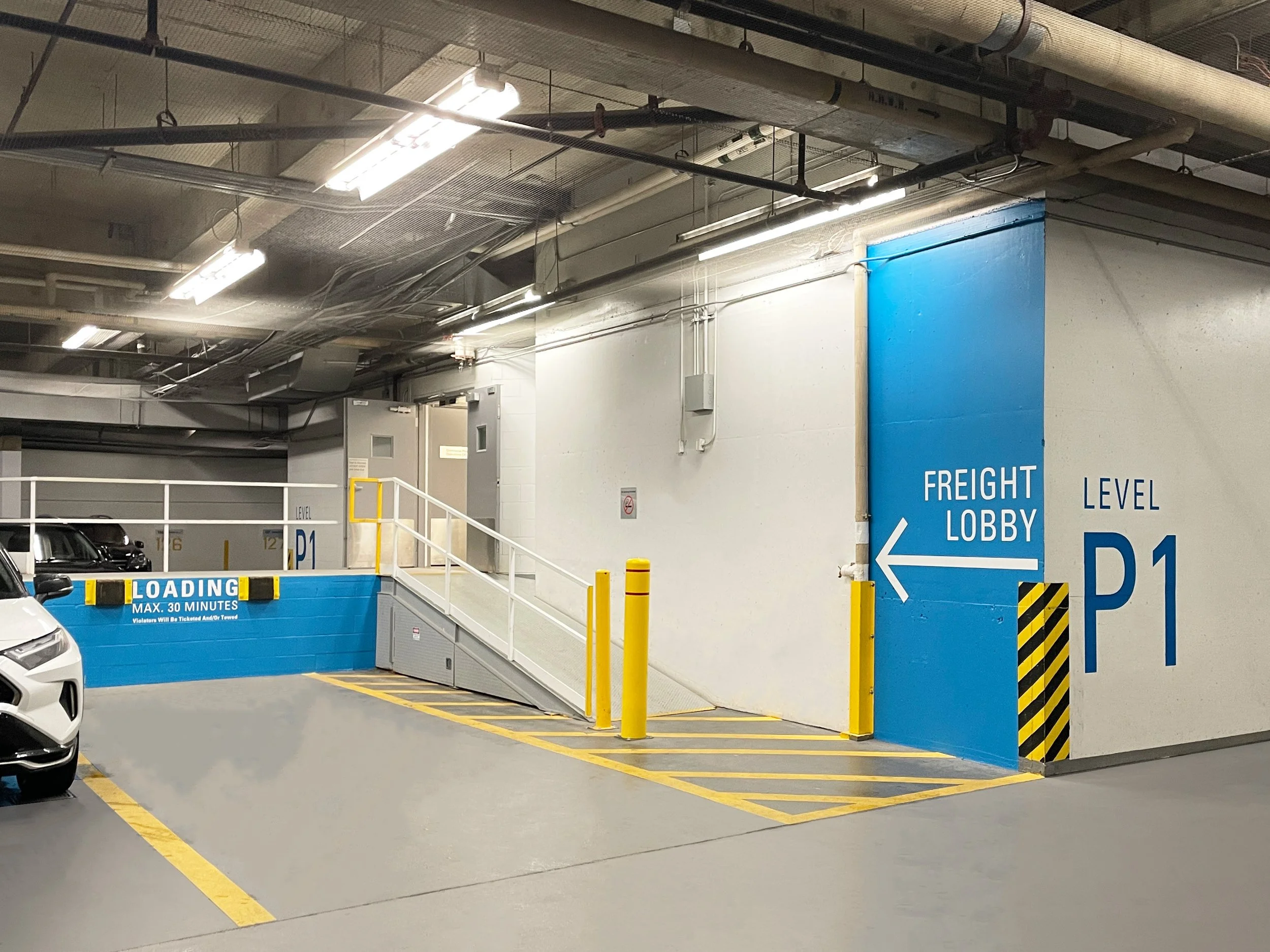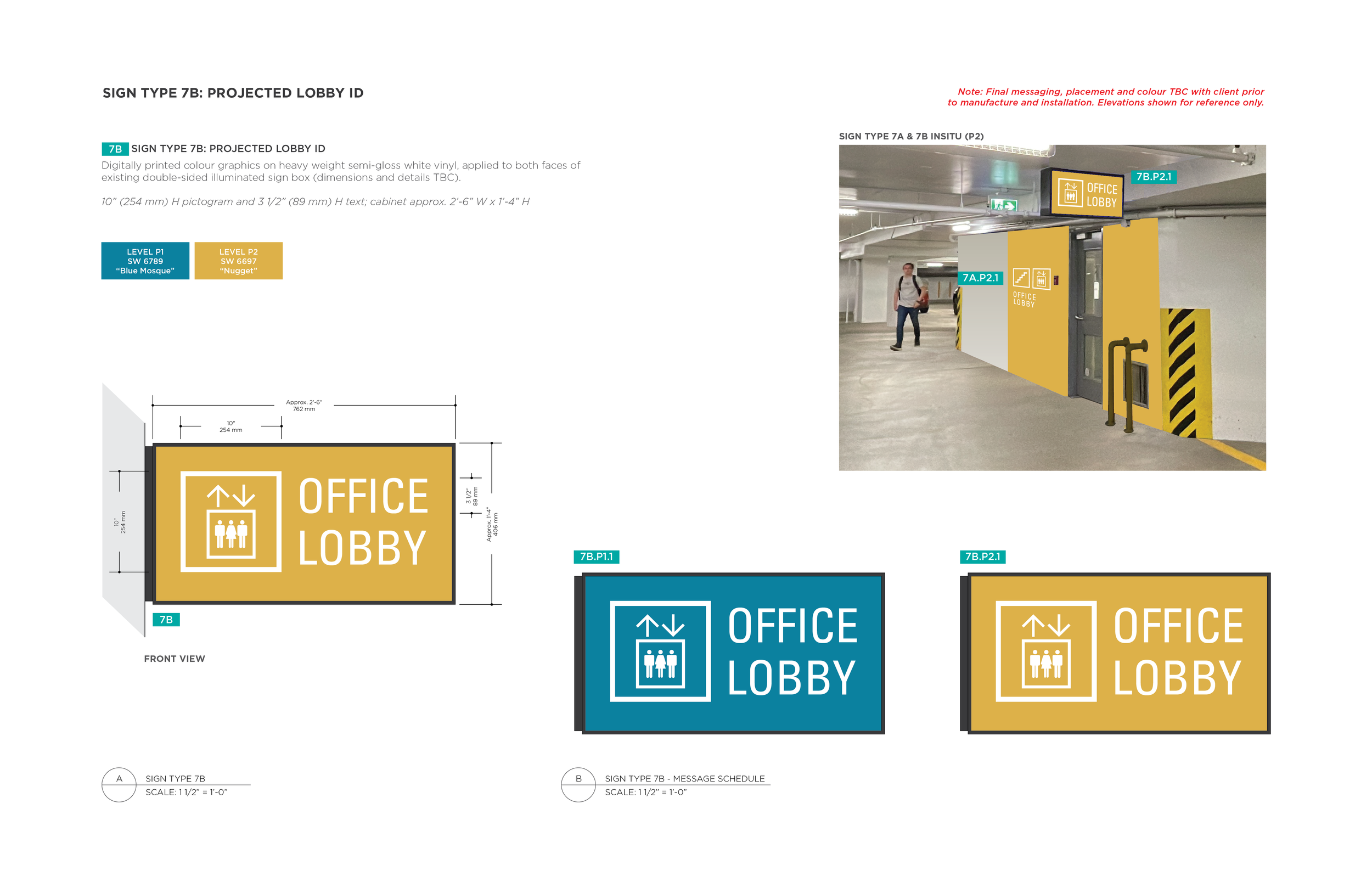 As the existing parkade contains several generations of worn and outdated signage, and is also missing key signage in helpful areas, we understand EDG is to prepare a contemporary and cohesive parkade and exterior wayfinding and signage design recommendation. The project will also need to consider existing exterior signage leading to and identifying the parkade entrance, as these are outdated, and could be made more discrete given the limited parking stalls available. Recently fabricated elevator lobby and room identification signage shall be retained, and any new proposed signage should visually complement with the objective of creating a cohesive sign program family.